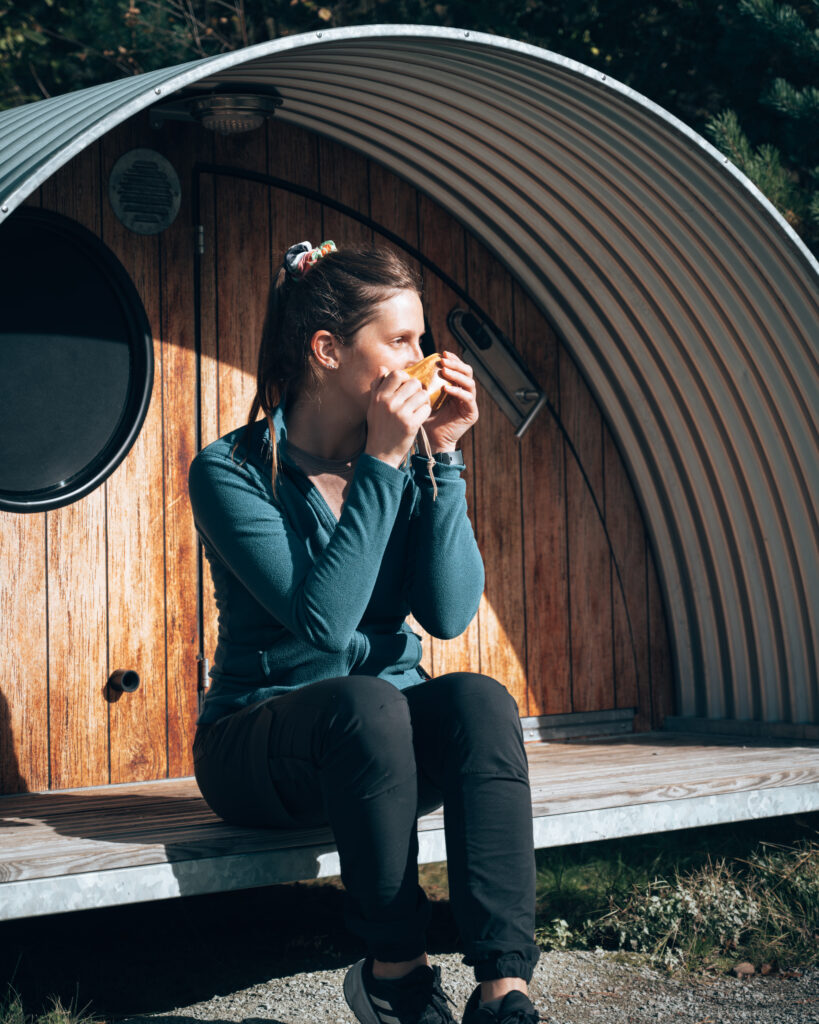 Hikers’ Camp ligger rett ved sandstranden ved Refsvatnet, med kort vei til både bading, padling og våre flytende badstuer.