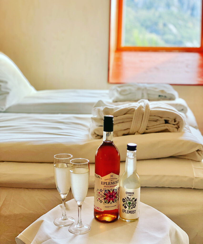 Nyt våre dobbeltrom med dobbeltseng og privat bad. Et godt alternativ for par eller deg som foretrekker en større seng. Våkne opp til en fantastisk utsikt over Refsvatnet, tunet og fjellene. Prisen inkluderer frokost, håndklær og sengetøy