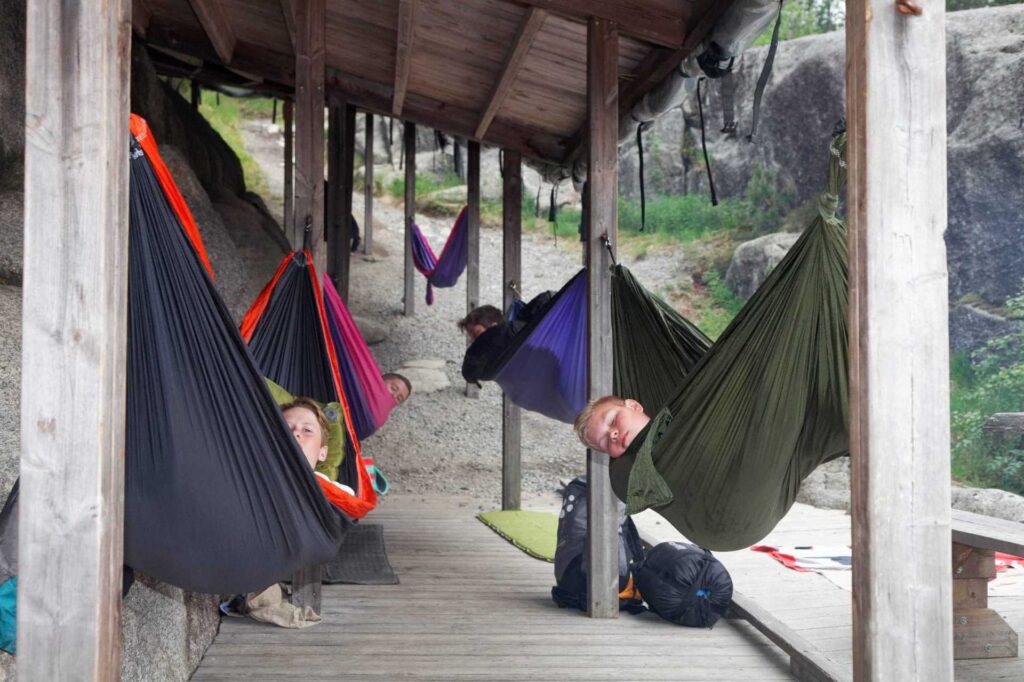 Det er kapasitet til opptil 12 hengekøyer under tak.